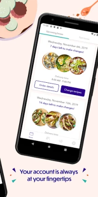 - Choose recipes and delivery days up to 8 weeks in advance.