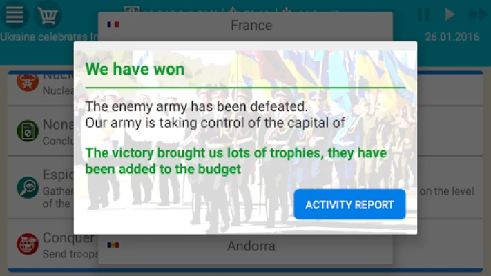 - Conduct army drills (there more than 10 kinds of military weaponry available to you).